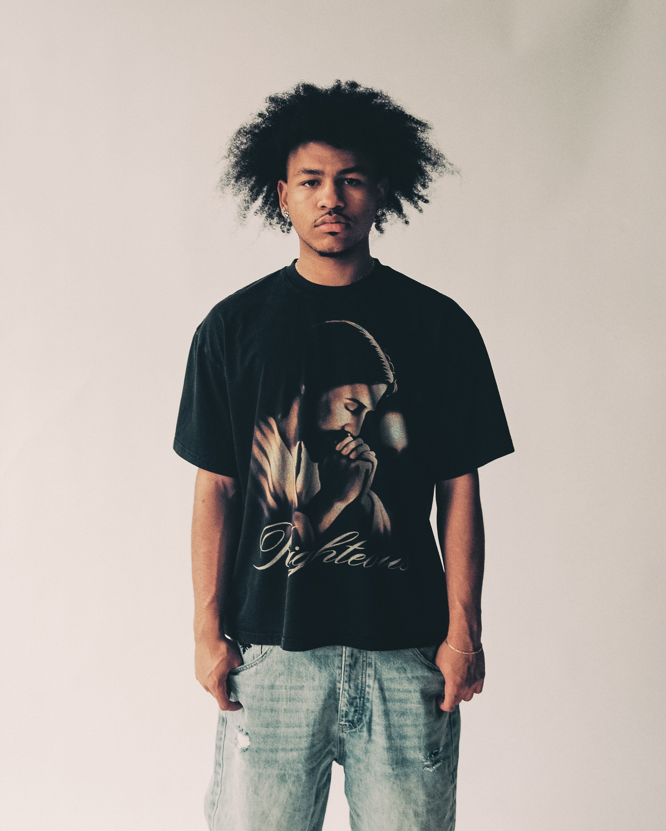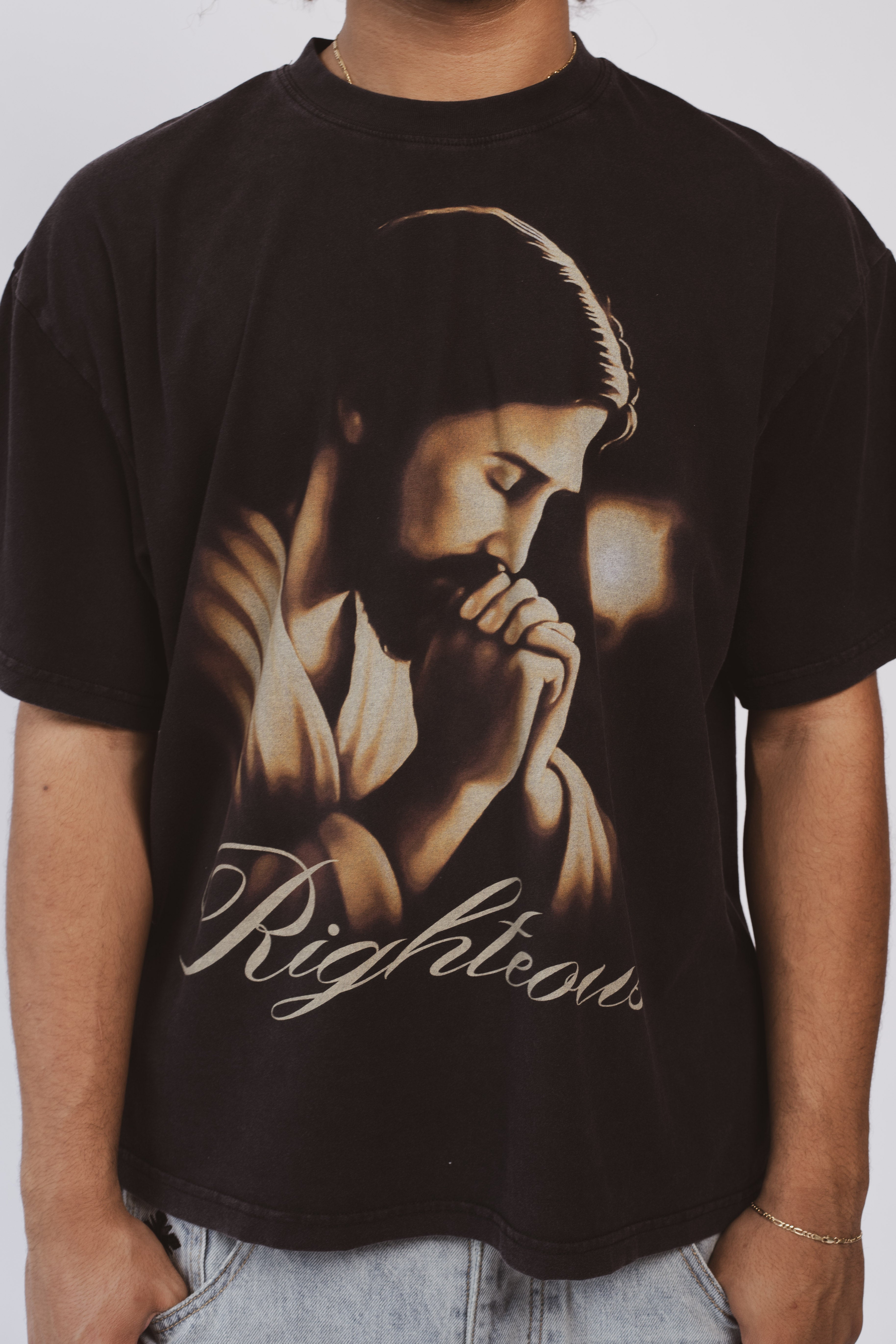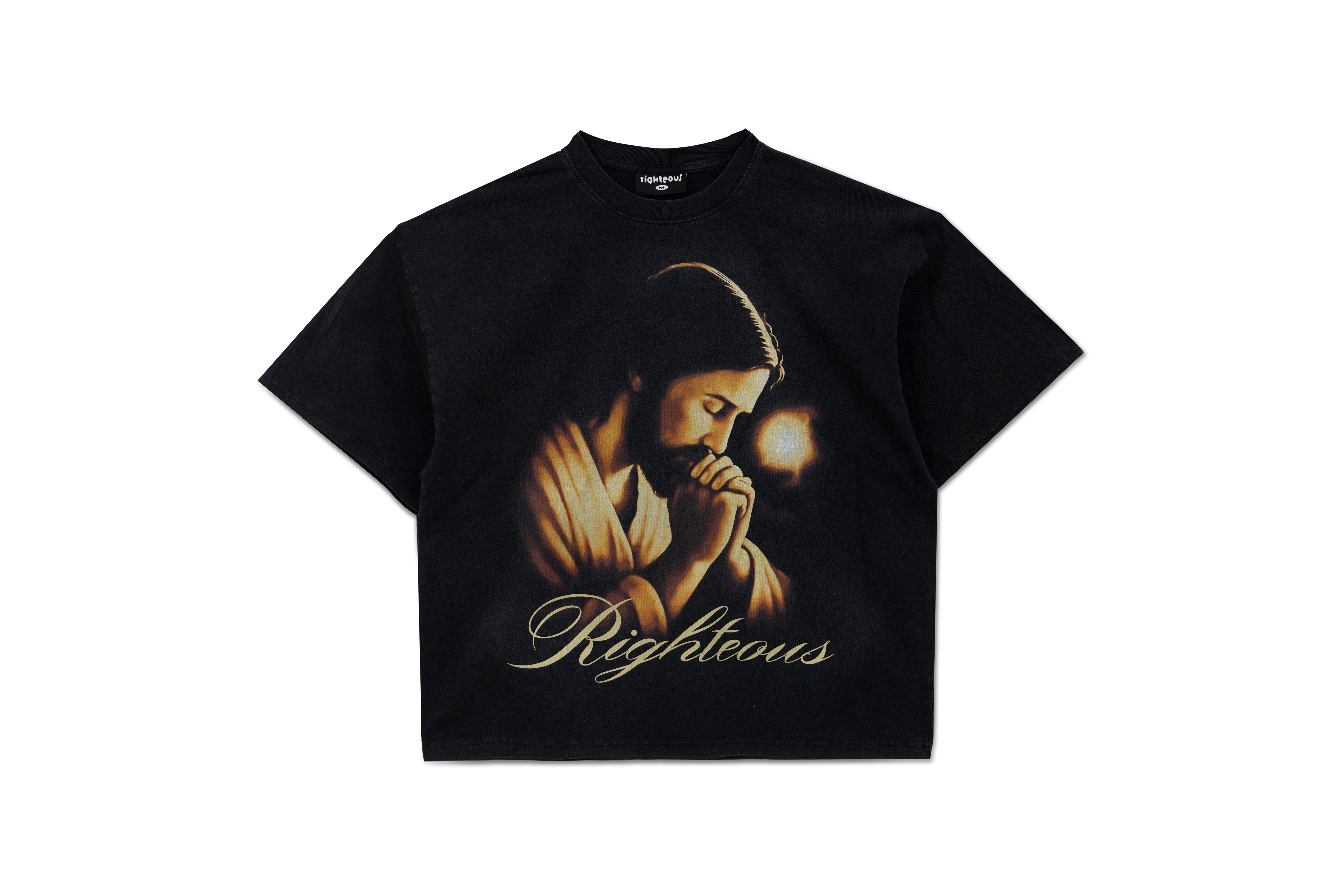 Printed on a soft 260gsm cotton tee with a boxy, slightly cropped fit, this piece blends lighthearted visuals with deep spiritual undertones. Finished with an acid wash and subtle distressing for a worn-in, vintage look.
