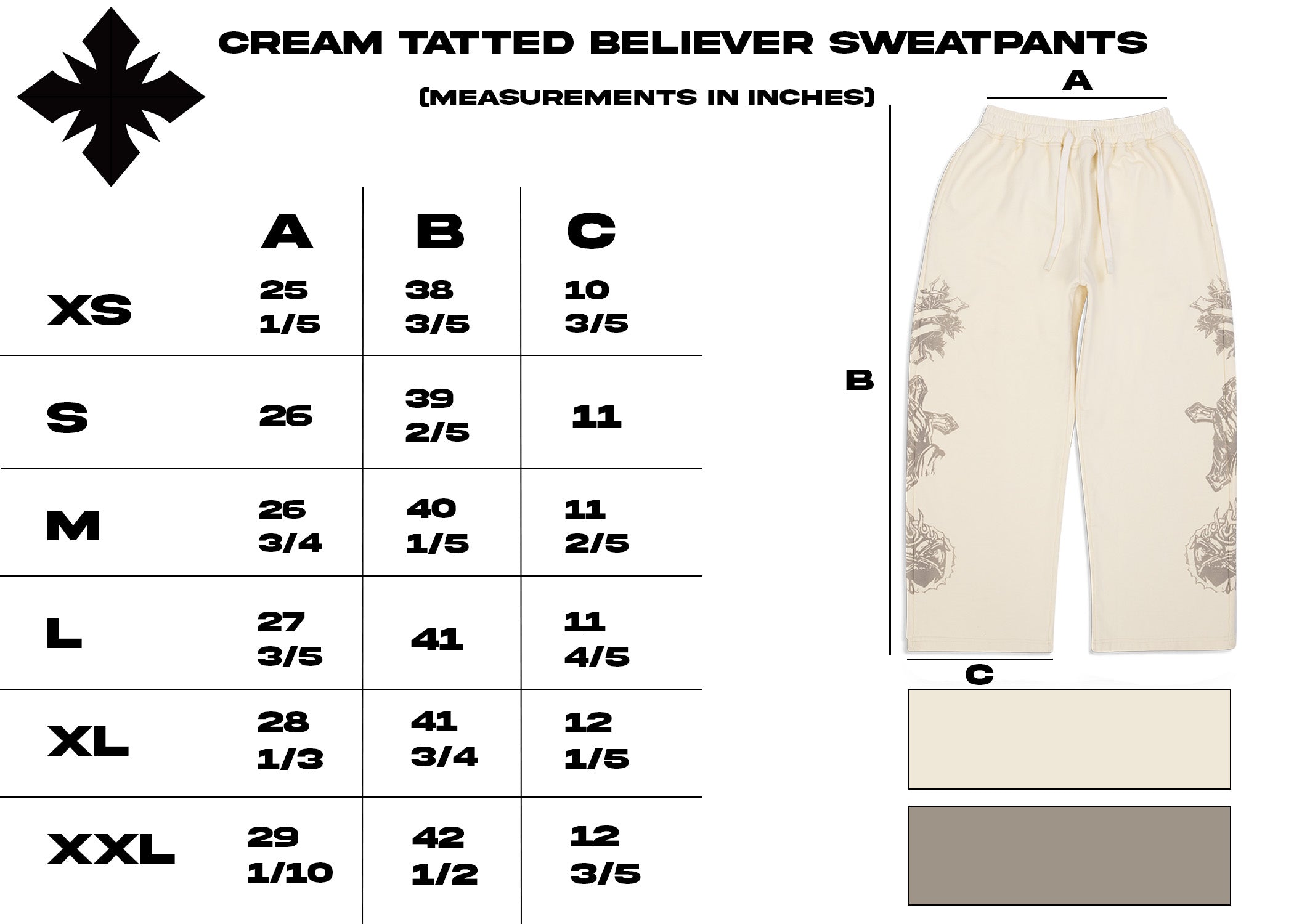 The Tatted Believer Sweatpants are designed to stand out while keeping you grounded in comfort—perfect for pairing with the matching zip-up or wearing on their own.