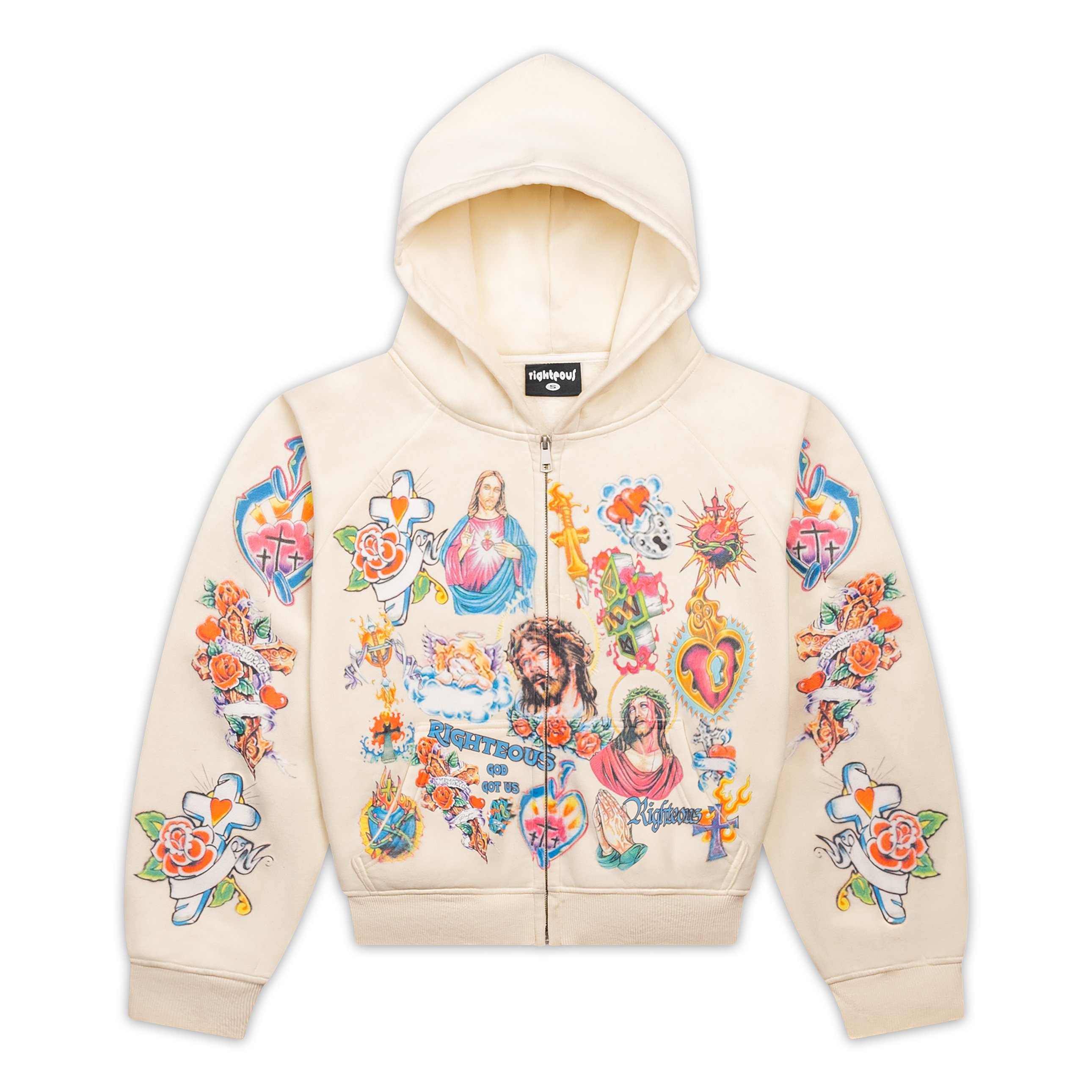 "Risen King" Cropped Zip Up (Cream)